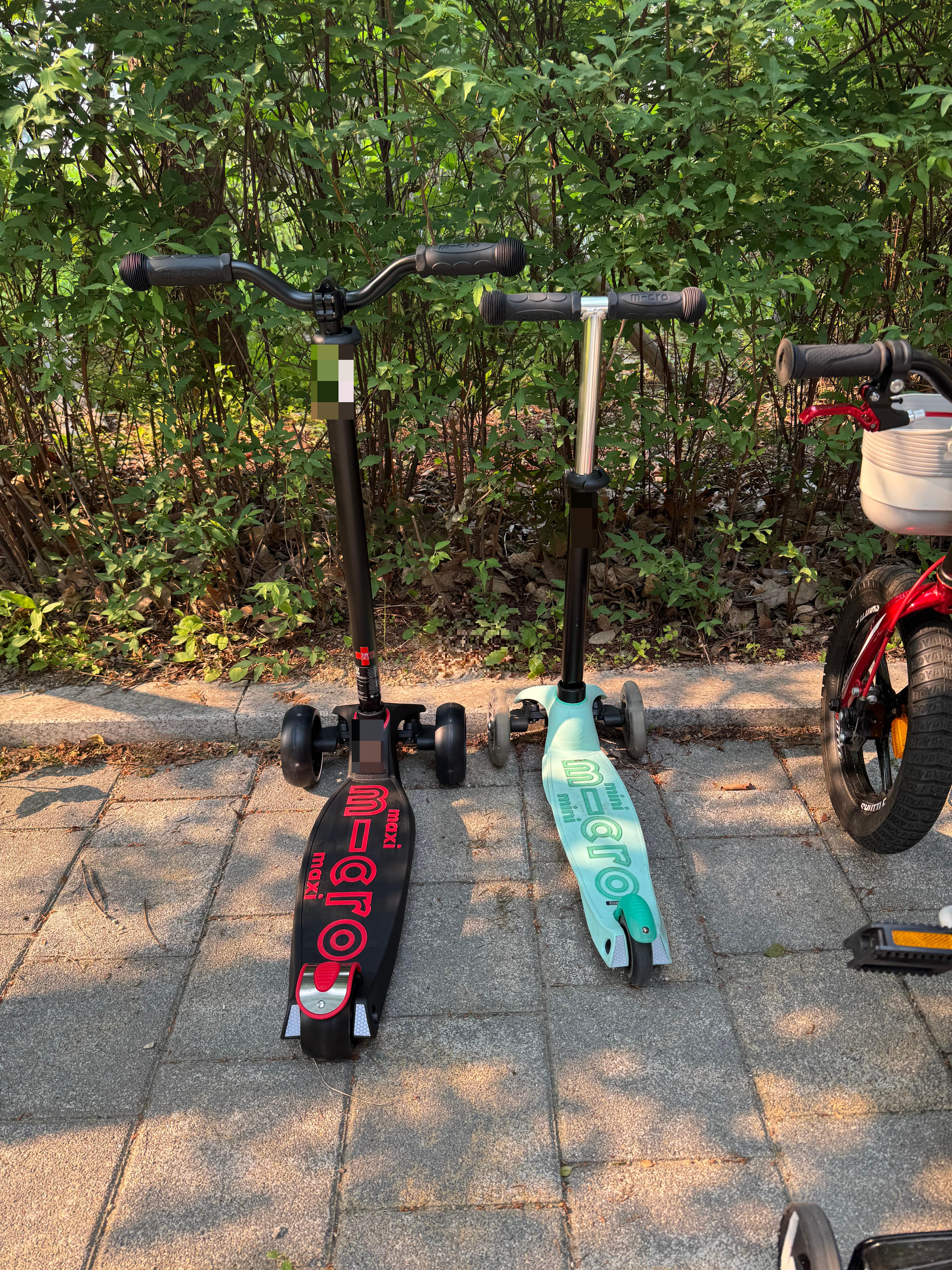 저는 첫째 두돌 즈음 마이크로 킥보드 미니투고를 구입했고 키 100cm가 된 41개월에 맥시T 프로 디럭스 LED를 구입했습니다. 미니투고를 좀 더 태울 수 있을 것 같았지만 동생이 킥보드에 관심을 보여 계획보다 좀 더 일찍 맥시를 들였습니다. 유아 킥보드로 마이크로 외에는 고려하지 않았고 역시나 만족스럽습니다. 아이도 좋아하네요.